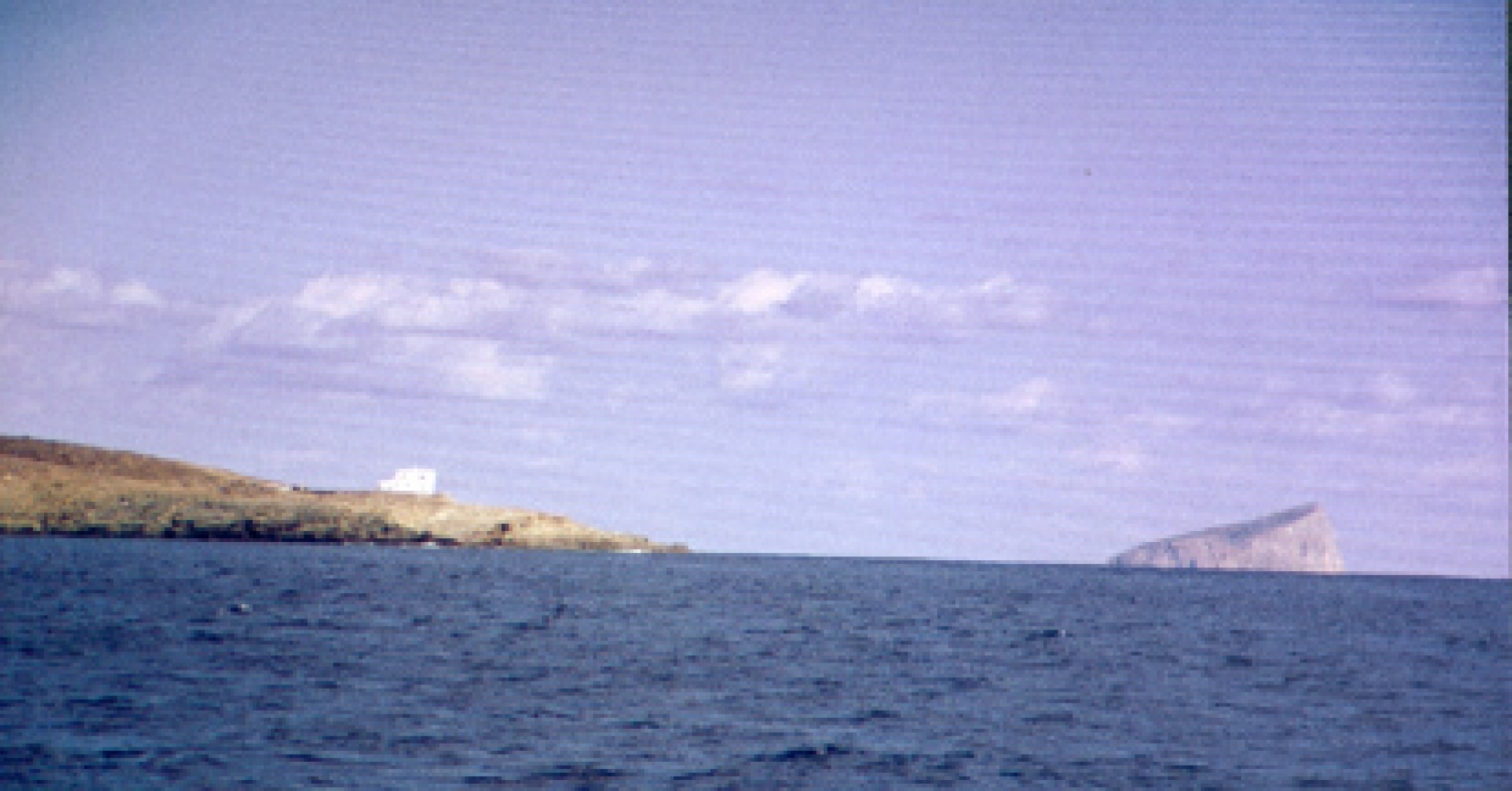 Um 0730 werden bei gutem Wind Bft 3 aus NE Segel gesetzt. Der Himmel ist völlig bedeckt und die Wolken hängen tief, aber es regnet nicht. Wir machen gute 5-6 kn Fahrt und passieren um 1100 den Leuchtturm an der Nordspitze von Siros. Kurz darauf machen wir eine Fähre am Horizont aus, die wir auf Kollisionskurs peilen. Wir weichen nach steuerbord aus und kaum 5 min später passiert sie uns an backbord. Beeindruckend mit welcher Geschwindigkeit die Pötte fahren!