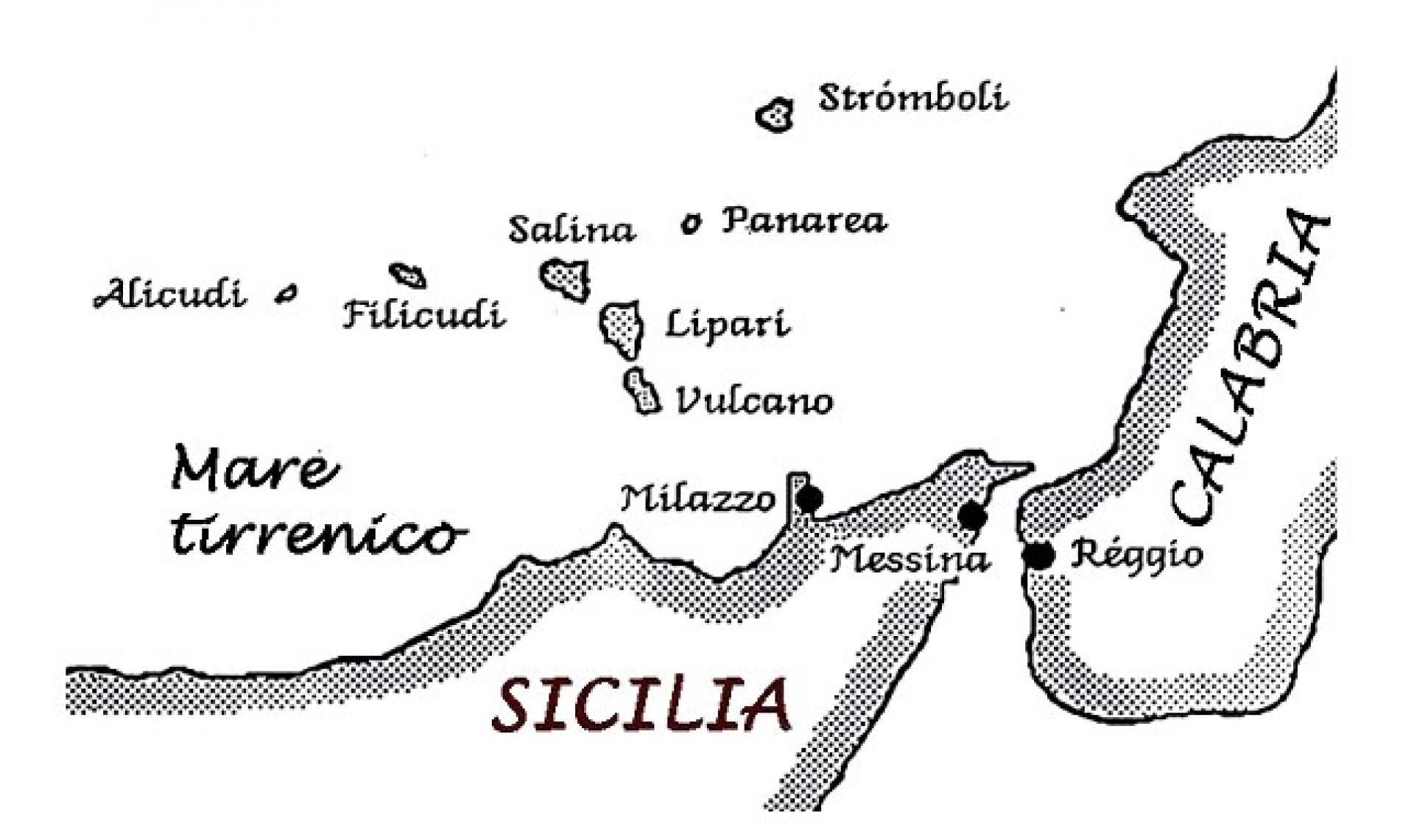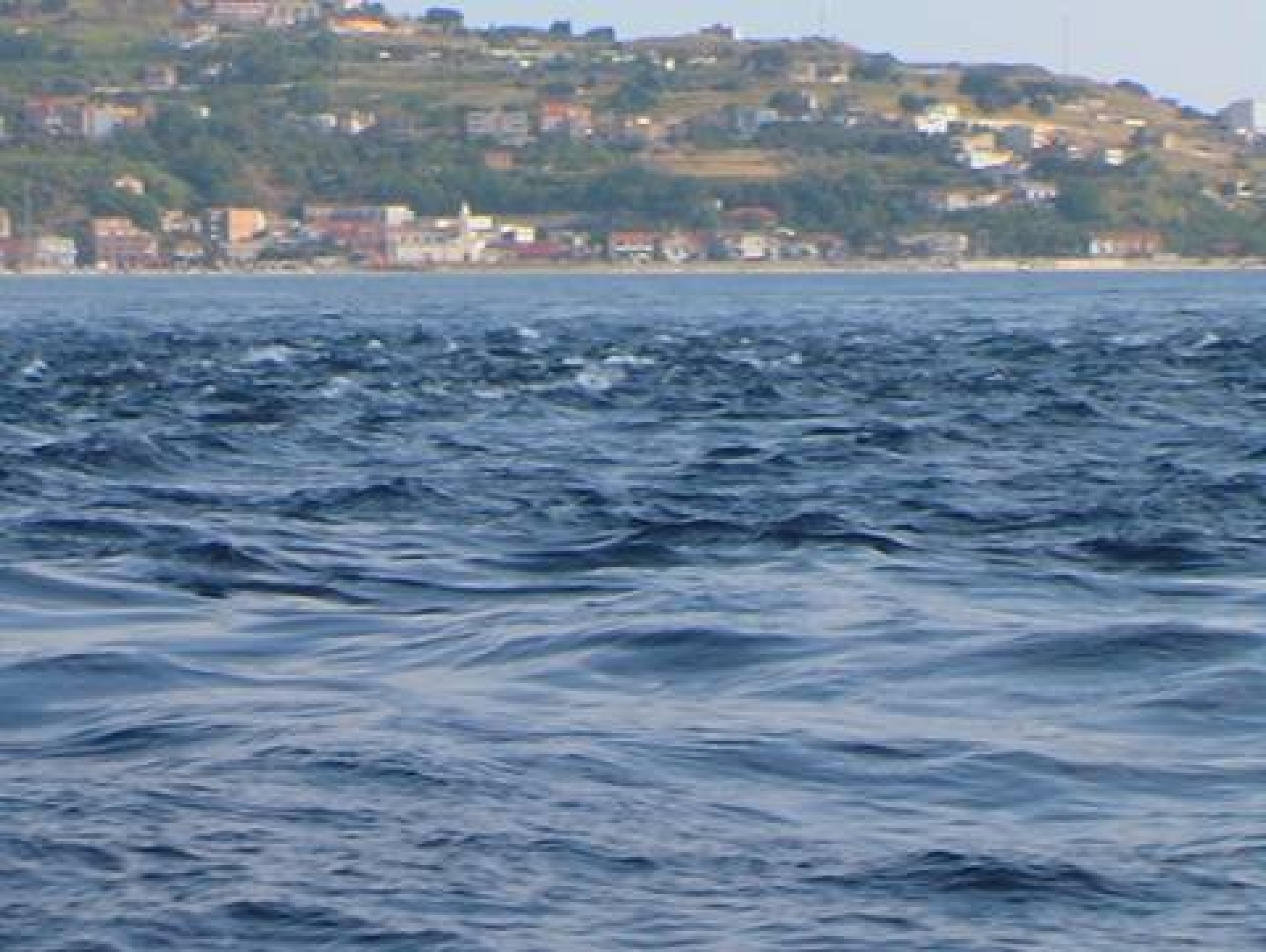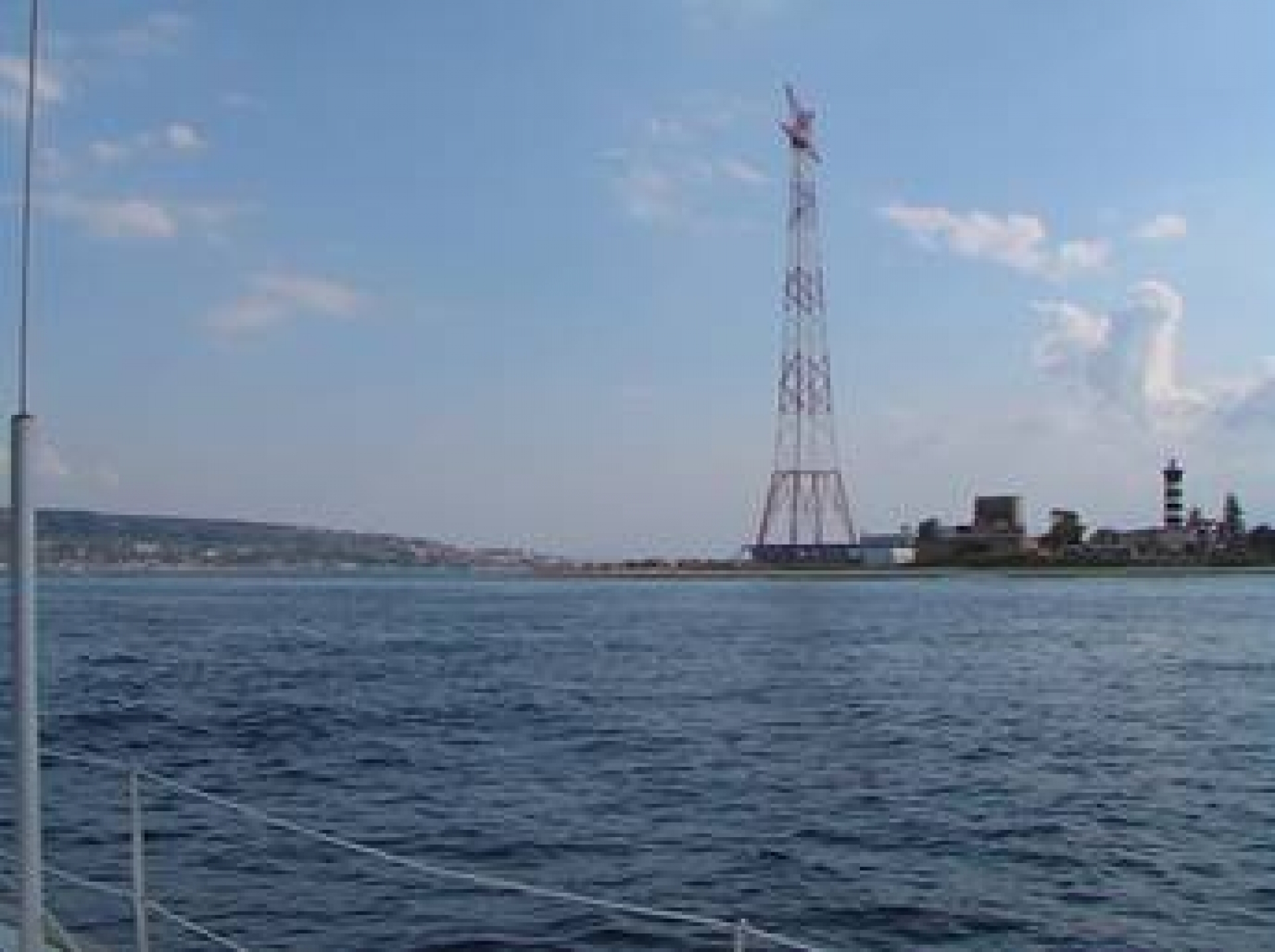 Am Sonntagmorgen hat der Himmel endlich die Schleusen geschlossen und Sonnenschein, ein leichter Wind und stille See begeistern uns bei der Abfahrt unter Motor Richtung Straße von Messina. Wir halten uns nahe der kalabrischen Küste möglichst noch außerhalb des Verkehrtrennungsgebietes, denn die Großschifffahrt ist äußerst präsent, was im Bereich des Fährverkehrs nach Messina nochmals gesteigert wird. Bei Punta Pezzo sehen wir die Strudel der Scilla und halten uns gemäß den Empfehlungen Odysseus' "nahe des schwarzen Felsens, der immer von einer dunklen Wolke eingehüllt wird" und "treiben unser Schiff rasch durch die Enge". Hier hat sich auch prompt der Seegang geändert und dunkle Wolken ziehen auf. Der Wind bläst so verführerisch, dass Matthias Segel setzen lässt und wir auch schon davongetragen werden. Das Vergnügen dauert keine halbe Stunde und ein kräftiges Gewitter zieht auf, wir reffen und prügeln im Am-Wind-Kurs an der Nordost-Spitze Siziliens gen Salina, unser bei diesen suspekten Wetterverhältnissen angestrebtes Ziel. Bald bauscht sich, wie angekündigt eine 2m-See auf, die für uns alle am ersten Tag recht unangenehm ist, zumal wir hart am Wind fahren müssen, um Salina zu erreichen.