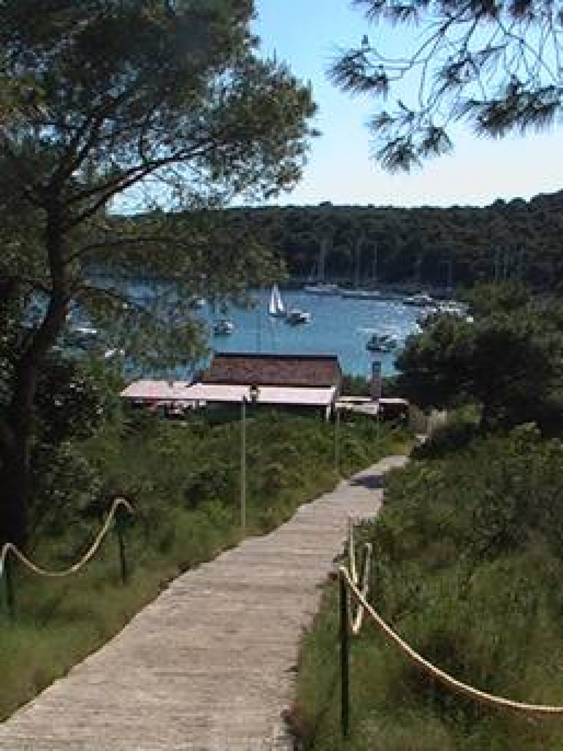 Das Wetter wird immer besser, die Strahlen der Sonne brechen sich durch die Nadeln der Kiefern und wärmen uns noch kurz vor ihrem Untergang. Der Blick auf die Bucht und die Landschaft, der Geruch des Essens und der Geschmack der Speisen und des Weines, all das berauscht uns