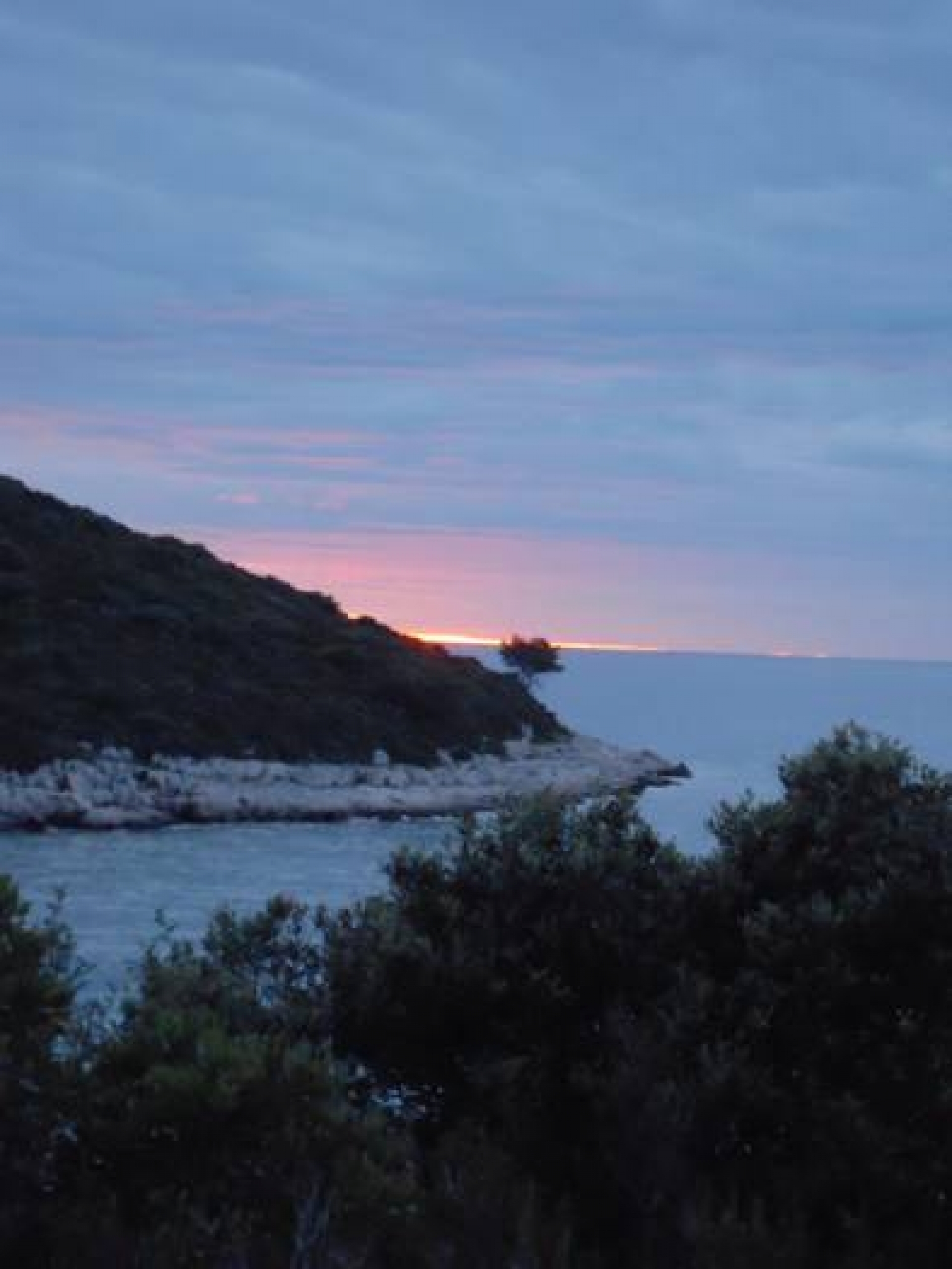 In unsere abendliche Runde im Cockpit platzt Jonas mit einem Schrei, der mich zwingt, ihm mit Kamera durch Gestrüpp und über Stock und Stein zu folgen, und wir werden auf dem Gipfel der Insel gerade noch Zeugen, wie die Sonne im Meer versinkt.