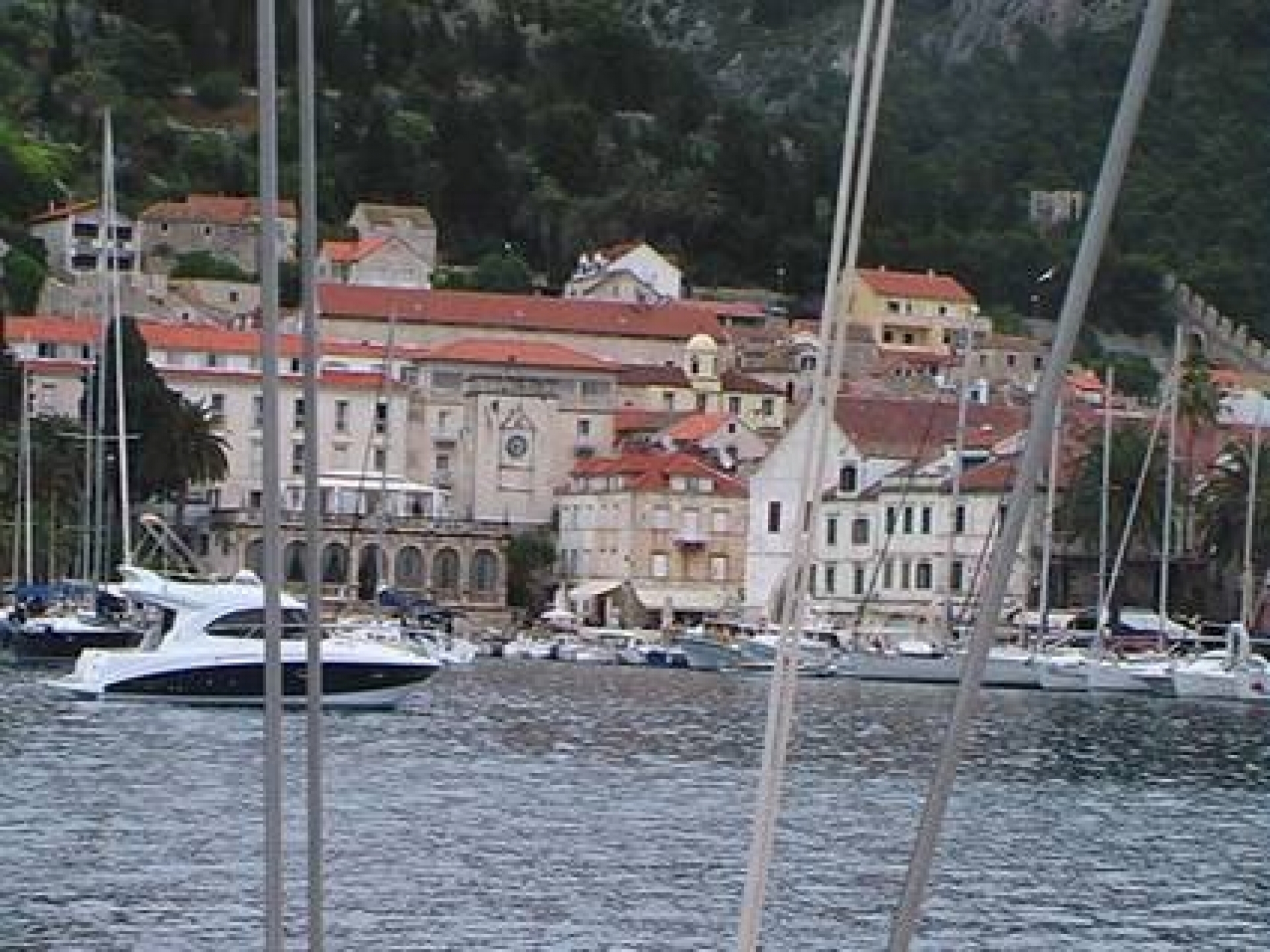 Der Vorschlag einer Stadtbesichtigung von Hvar findet allgemeinen Anklang und so legen wir um 1000 ab. Die knapp 3sm entfernte Hafenstadt ist rasch erreicht, aber unsere Idee hatten offensichtlich etliche Yachties, denn alle Plätze an der Mole sind belegt.
