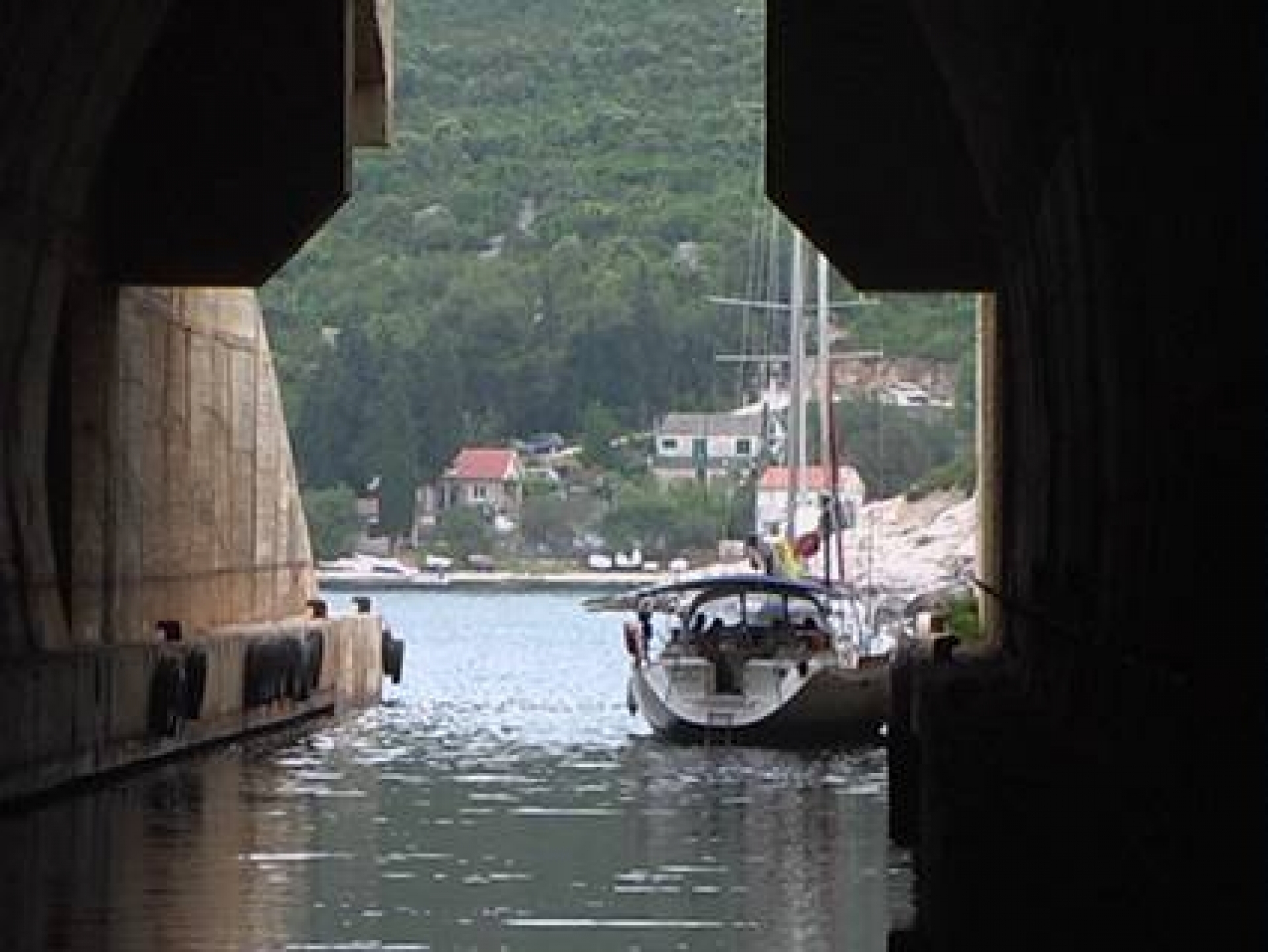 Bei Windstärke 5 und leichtem Seegang rauscht die VALENTINA mit bis zu 8,5kn dahin. Der Yugo bringt feuchte Luft und damit schlechte Sicht. Für die Nacht haben wir uns eine geschützte Bucht westlich von Vis-Stadt ausgesucht. Wir erreichen sie am Nachmittag und legen in einem alten Militärbunker aus Titos Zeiten an Steuerbord an. Hier sind wir vor Schwell und Böen geschützt.