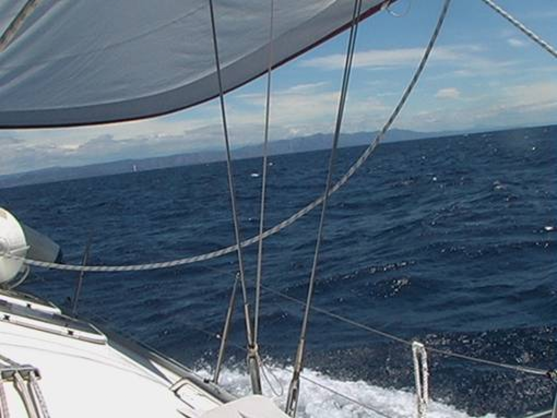 Noch immer bläst der Tramuntana mit 5-7Bft, so dass wir um 0900 das Großsegel im 2. Reff setzen. Da wir auf Raumschot-Kurs unterwegs sind, geht das Vorsegel ganz zu fahren. Wir rauschen mit 9,5kn durch die Wellen.